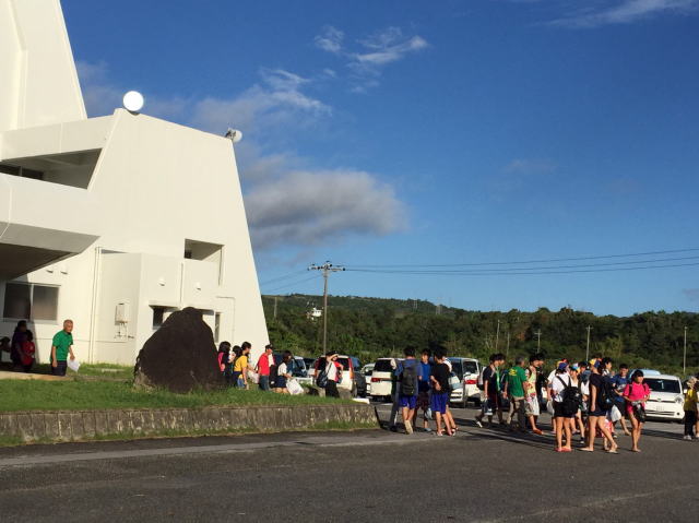 おはようございます。 東村体育館での離村式の様子です。今日も良いお天気です。 生徒たちも笑顔で帰ってきました。皆元気です。 名残は尽きず。 体験メニューに行ってきま〜す。