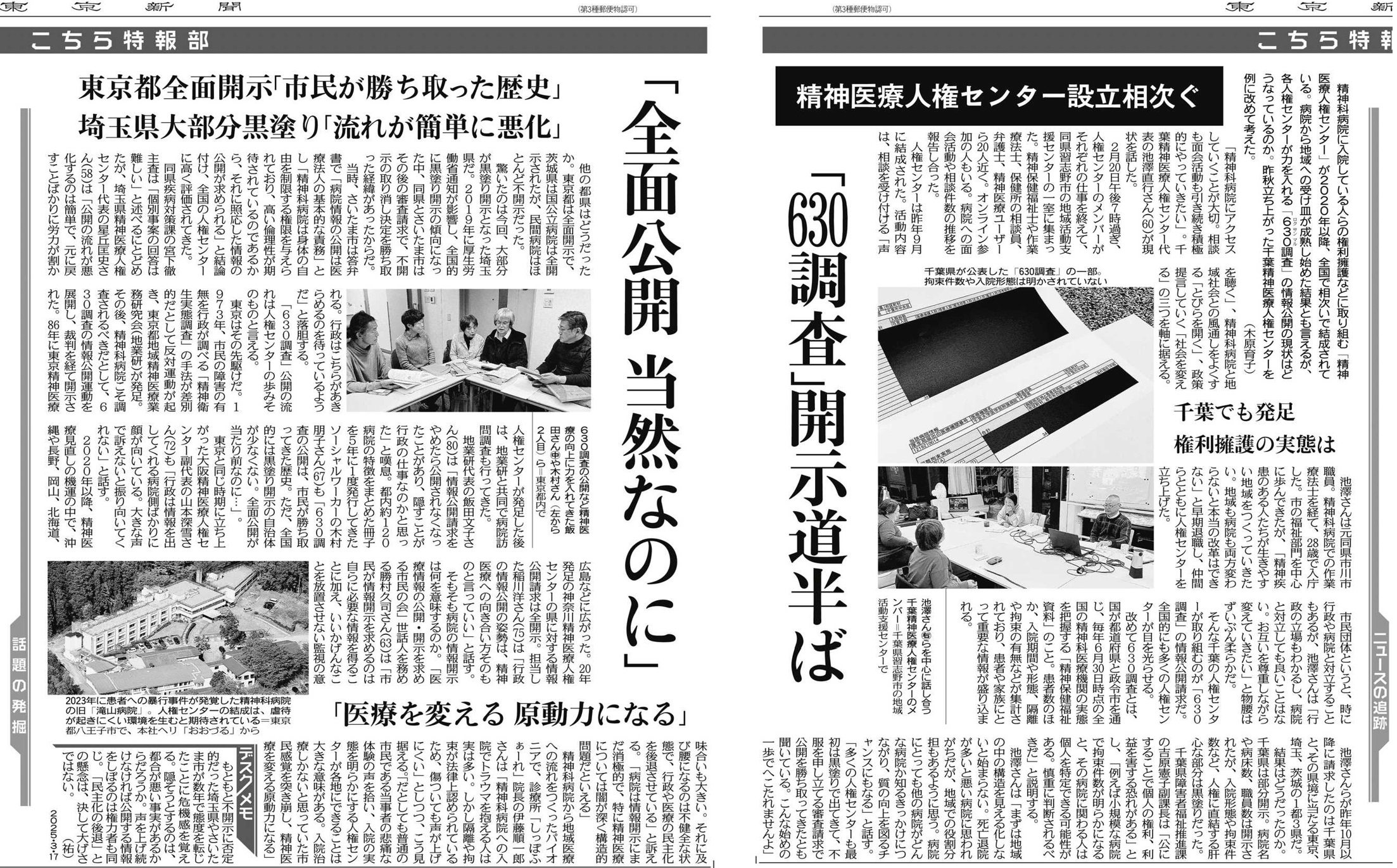 東京新聞「全面公開当然なのに 精神医療人権センター設立相次ぐ」(2025年3月17日)