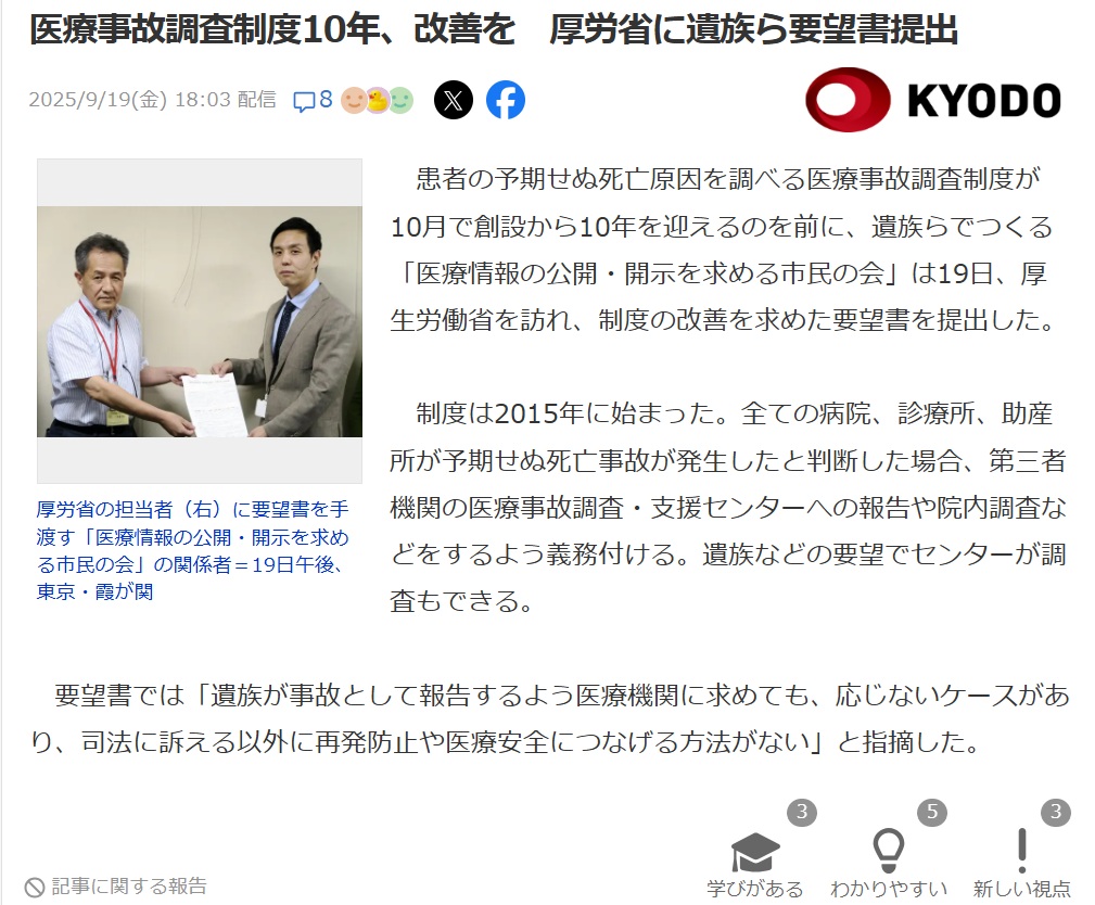 医療の質の向上を目指す医療者と医療事故被害者の念願だった「医療事故調査制度」は、本年10月に制度開始から10年目に入りました。